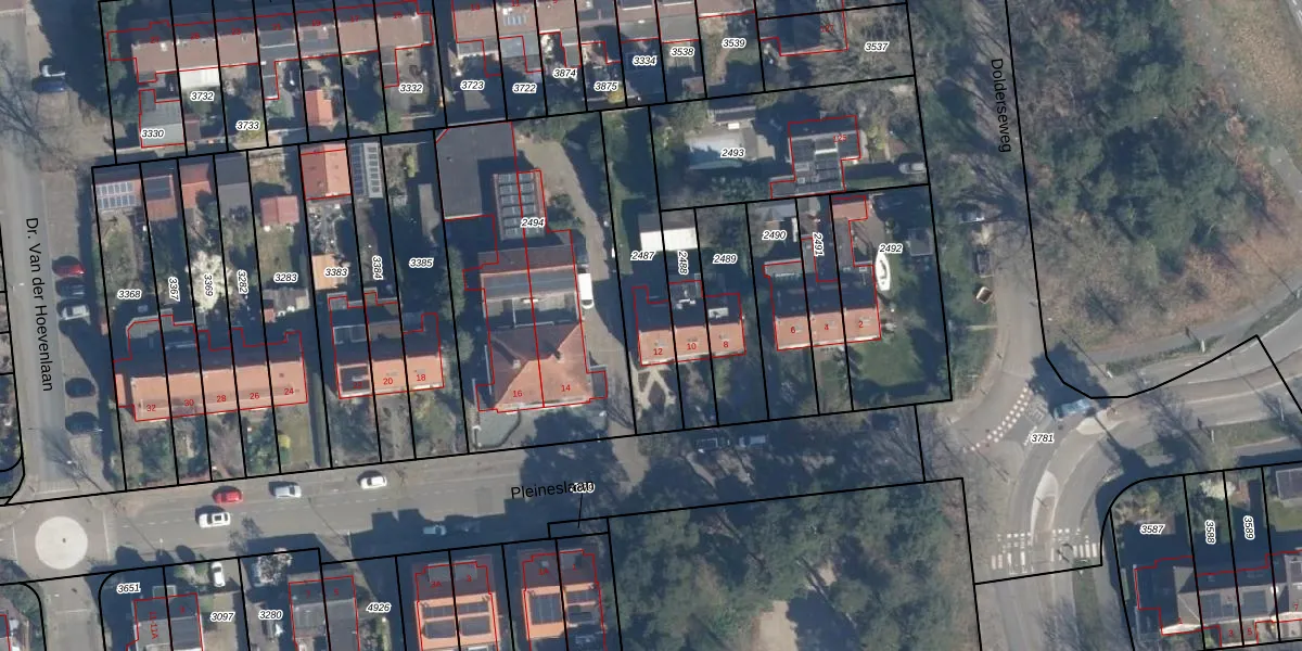 Het perceel waarop Pleineslaan 12 staat heeft een oppervlakte van 361 m². Dit is een groot perceel. De perceeloppervlakte wordt geregistreerd door het Kadaster. Gedetailleerde informatie over de maten van dit perceel kunt u vinden in het rapport Kadastrale kaart met maatvoering van Pleineslaan 12.
