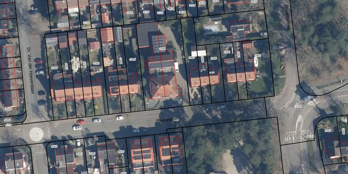 Pleineslaan 14 is gelegen op kadastraal perceel ZEI00A2494. Deze kadastrale aanduiding is uniek en wordt gebruikt door het Kadaster om eigendomsrechten en andere zakelijke rechten vast te leggen. Het perceel maakt onderdeel uit van de kadastrale gemeente Zeist.
