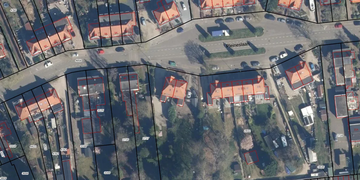 Het perceel waarop Pleineslaan 39 staat heeft een oppervlakte van 6400 m². Dit is een zeer groot perceel. De perceeloppervlakte wordt geregistreerd door het Kadaster. Gedetailleerde informatie over de maten van dit perceel kunt u vinden in het rapport Kadastrale kaart met maatvoering van Pleineslaan 39.