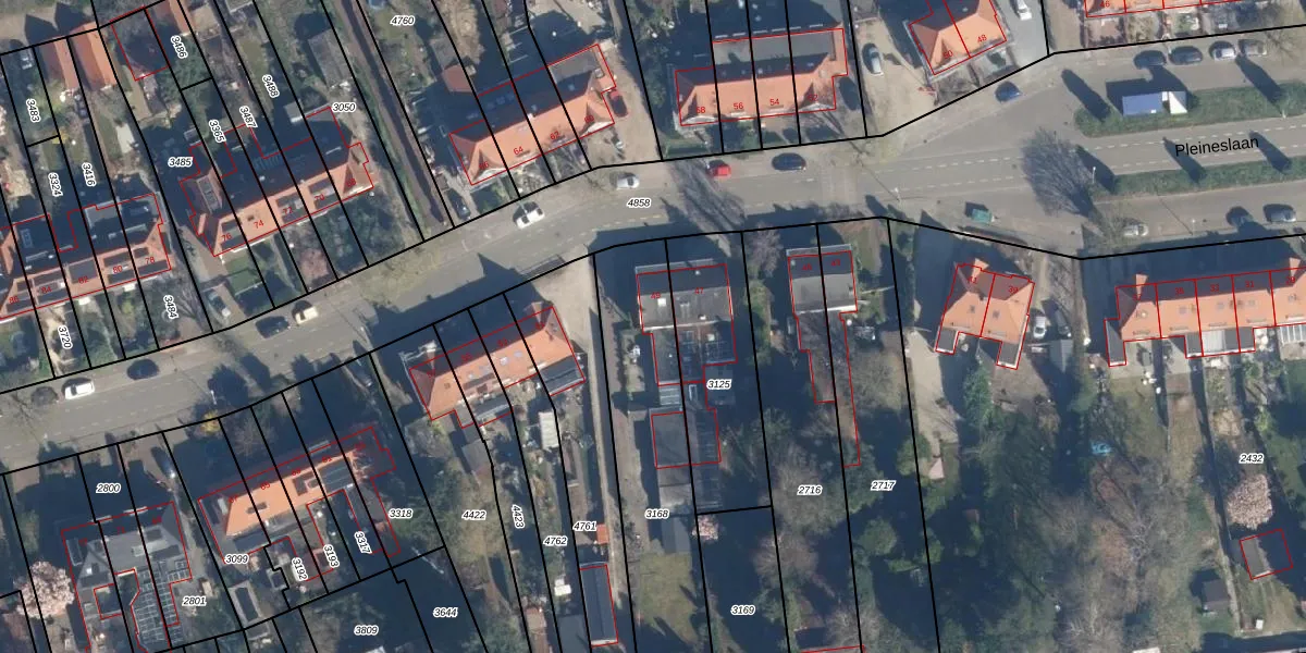 Het perceel waarop Pleineslaan 49 staat heeft een oppervlakte van 832 m². Dit is een groot perceel. De perceeloppervlakte wordt geregistreerd door het Kadaster. Gedetailleerde informatie over de maten van dit perceel kunt u vinden in het rapport Kadastrale kaart met maatvoering van Pleineslaan 49.