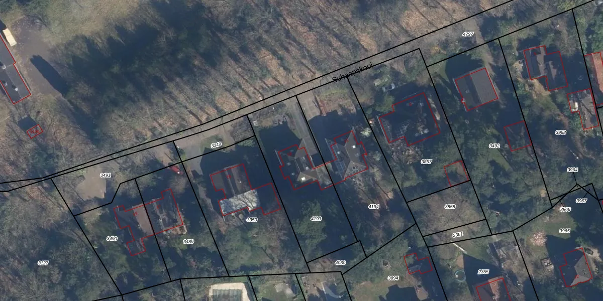 Het perceel waarop Schaapskooi 13 staat heeft een oppervlakte van 950 m². Dit is een groot perceel. De perceeloppervlakte wordt geregistreerd door het Kadaster. Gedetailleerde informatie over de maten van dit perceel kunt u vinden in het rapport Kadastrale kaart met maatvoering van Schaapskooi 13.