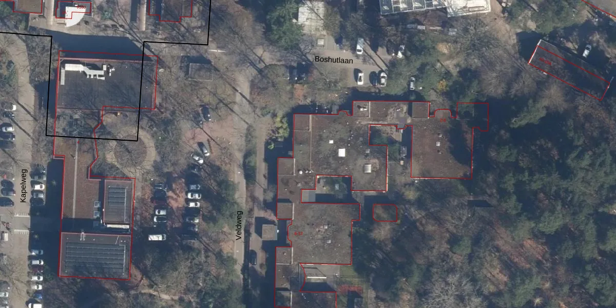 Het perceel waarop Veldweg 12 staat heeft een oppervlakte van 13,0 ha. Dit is een zeer groot perceel. De perceeloppervlakte wordt geregistreerd door het Kadaster. Gedetailleerde informatie over de maten van dit perceel kunt u vinden in het rapport Kadastrale kaart met maatvoering van Veldweg 12.