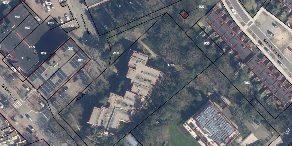Het perceel waarop Vliegdennen 17 staat heeft een oppervlakte van 4410 m². Dit is een zeer groot perceel. De perceeloppervlakte wordt geregistreerd door het Kadaster. Gedetailleerde informatie over de maten van dit perceel kunt u vinden in het rapport Kadastrale kaart met maatvoering van Vliegdennen 17.