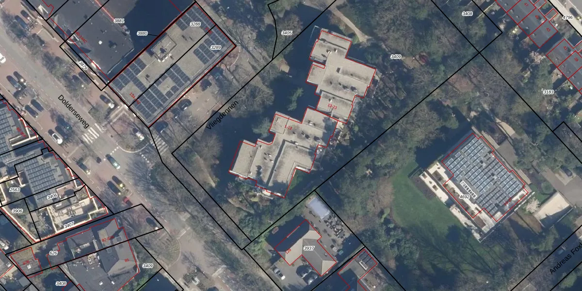 Het perceel waarop Vliegdennen 6 staat heeft een oppervlakte van 4410 m². Dit is een zeer groot perceel. De perceeloppervlakte wordt geregistreerd door het Kadaster. Gedetailleerde informatie over de maten van dit perceel kunt u vinden in het rapport Kadastrale kaart met maatvoering van Vliegdennen 6.
