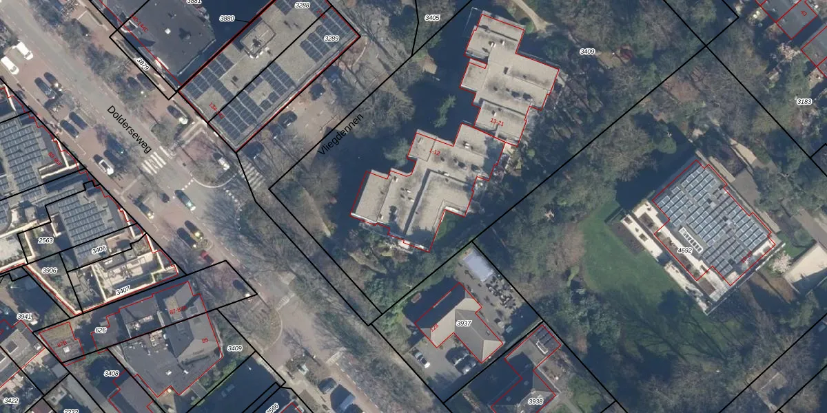Het perceel waarop Vliegdennen 7 staat heeft een oppervlakte van 4410 m². Dit is een zeer groot perceel. De perceeloppervlakte wordt geregistreerd door het Kadaster. Gedetailleerde informatie over de maten van dit perceel kunt u vinden in het rapport Kadastrale kaart met maatvoering van Vliegdennen 7.