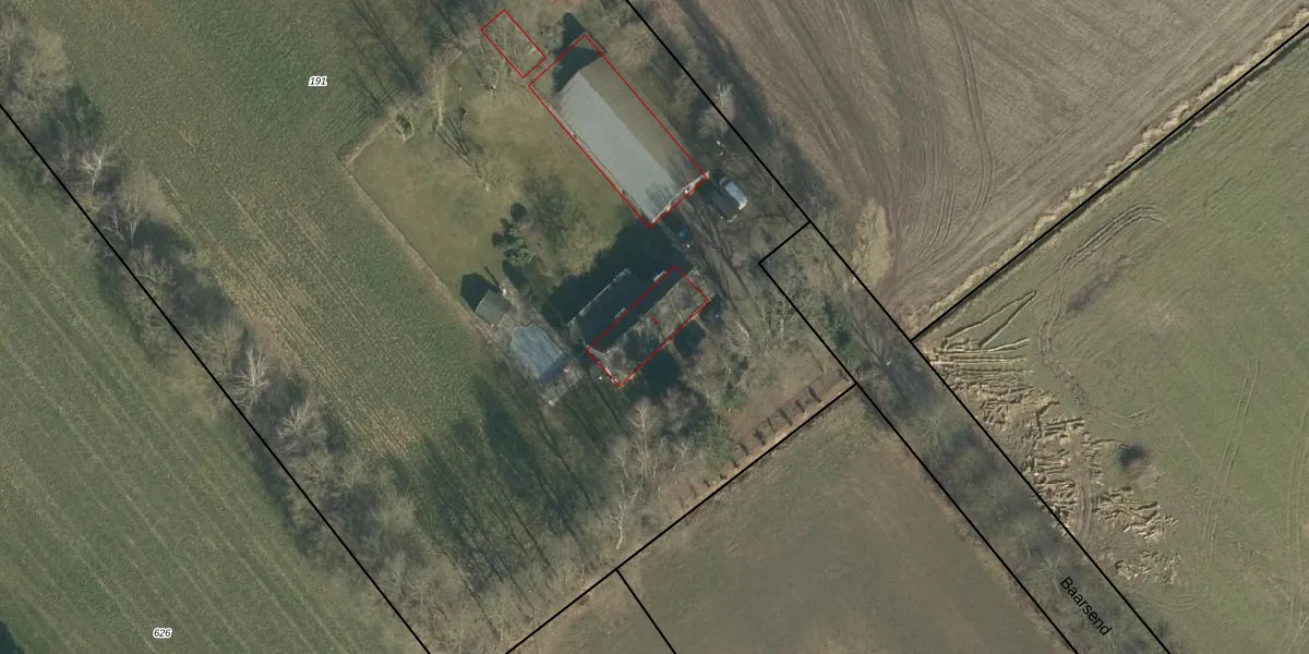 Het perceel waarop Baarsend 2 staat heeft een oppervlakte van 1,4 ha. Dit is een zeer groot perceel. De perceeloppervlakte wordt geregistreerd door het Kadaster. Gedetailleerde informatie over de maten van dit perceel kunt u vinden in het rapport Kadastrale kaart met maatvoering van Baarsend 2.