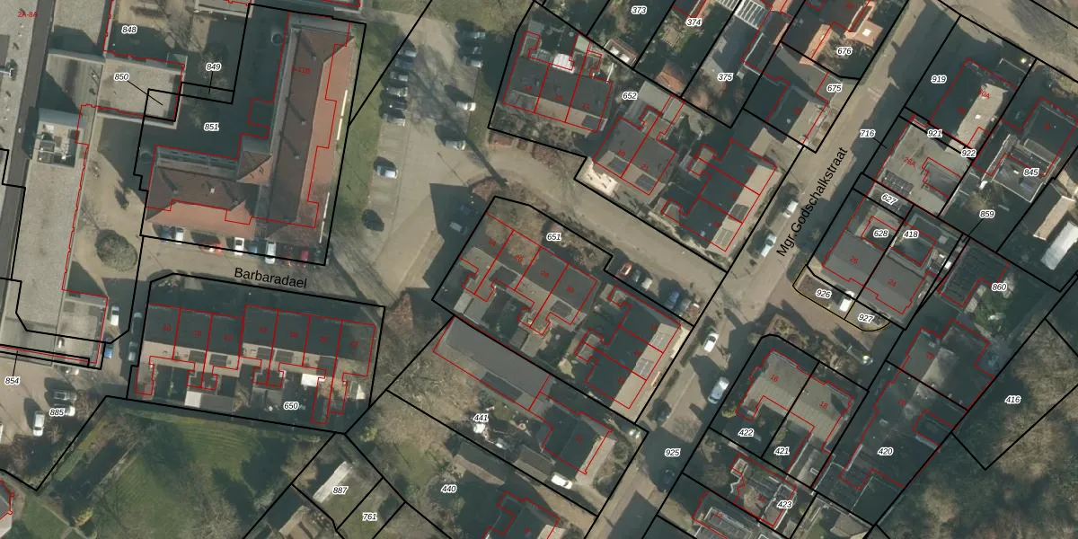 Barbaradael 28 is gelegen op kadastraal perceel DGN02D651. Deze kadastrale aanduiding is uniek en wordt gebruikt door het Kadaster om eigendomsrechten en andere zakelijke rechten vast te leggen. Het perceel maakt onderdeel uit van de kadastrale gemeente Den Dungen.