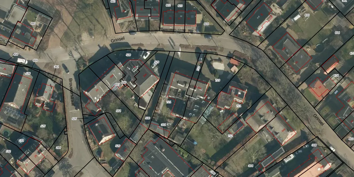 Het perceel waarop Grinsel 32 staat heeft een oppervlakte van 722 m². Dit is een groot perceel. De perceeloppervlakte wordt geregistreerd door het Kadaster. Gedetailleerde informatie over de maten van dit perceel kunt u vinden in het rapport Kadastrale kaart met maatvoering van Grinsel 32.