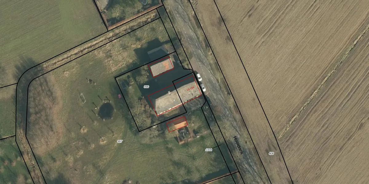 Hooidonk 13-A is gelegen op kadastraal perceel DGN02G997. Deze kadastrale aanduiding is uniek en wordt gebruikt door het Kadaster om eigendomsrechten en andere zakelijke rechten vast te leggen. Het perceel maakt onderdeel uit van de kadastrale gemeente Den Dungen.