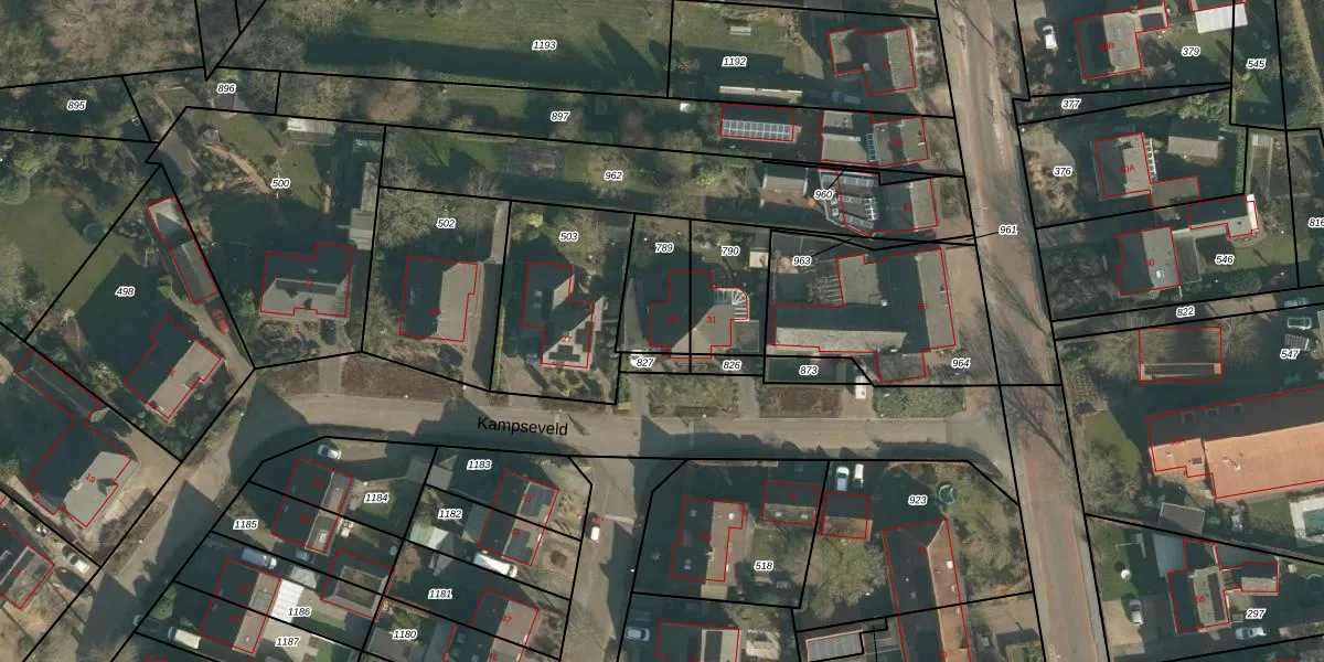 Het perceel waarop Kampseveld 29 staat heeft een oppervlakte van 203 m². Dit is een middelgroot perceel. De perceeloppervlakte wordt geregistreerd door het Kadaster. Gedetailleerde informatie over de maten van dit perceel kunt u vinden in het rapport Kadastrale kaart met maatvoering van Kampseveld 29.