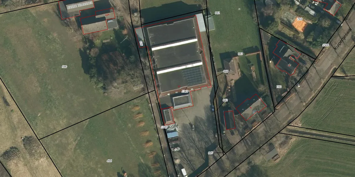 Het perceel waarop Kuipertjeswal 10 staat heeft een oppervlakte van 2843 m². Dit is een zeer groot perceel. De perceeloppervlakte wordt geregistreerd door het Kadaster. Gedetailleerde informatie over de maten van dit perceel kunt u vinden in het rapport Kadastrale kaart met maatvoering van Kuipertjeswal 10.