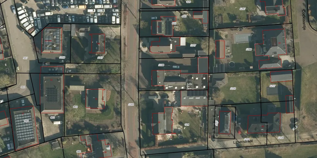 Het perceel waarop Litserstraat 70 staat heeft een oppervlakte van 915 m². Dit is een groot perceel. De perceeloppervlakte wordt geregistreerd door het Kadaster. Gedetailleerde informatie over de maten van dit perceel kunt u vinden in het rapport Kadastrale kaart met maatvoering van Litserstraat 70.