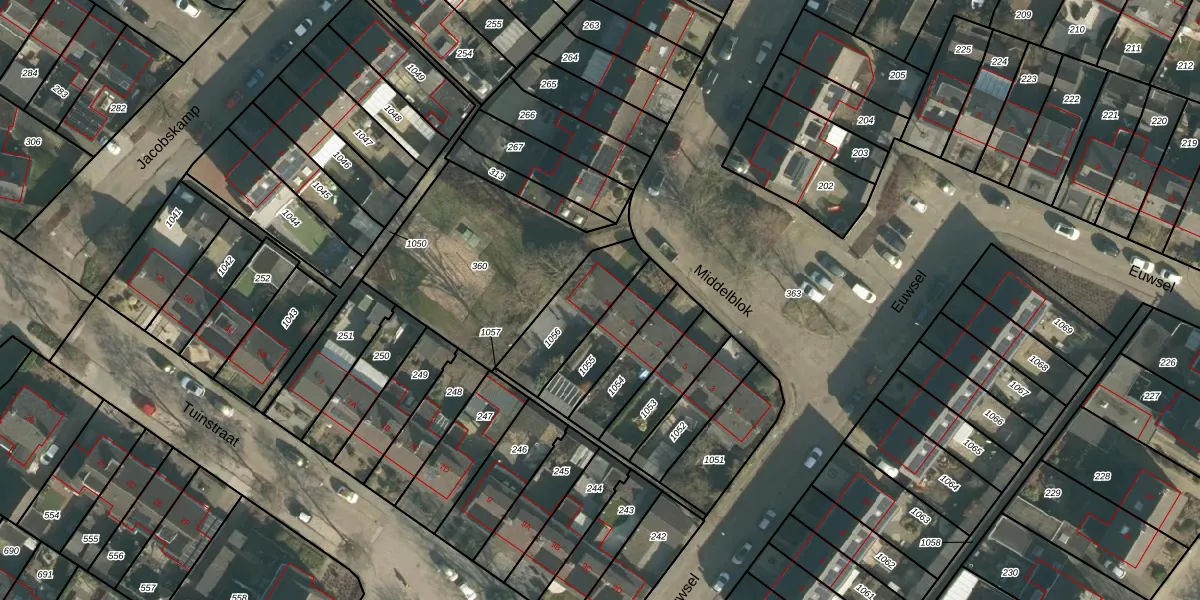 Het perceel waarop Middelblok 11 staat heeft een oppervlakte van 245 m². Dit is een middelgroot perceel. De perceeloppervlakte wordt geregistreerd door het Kadaster. Gedetailleerde informatie over de maten van dit perceel kunt u vinden in het rapport Kadastrale kaart met maatvoering van Middelblok 11.