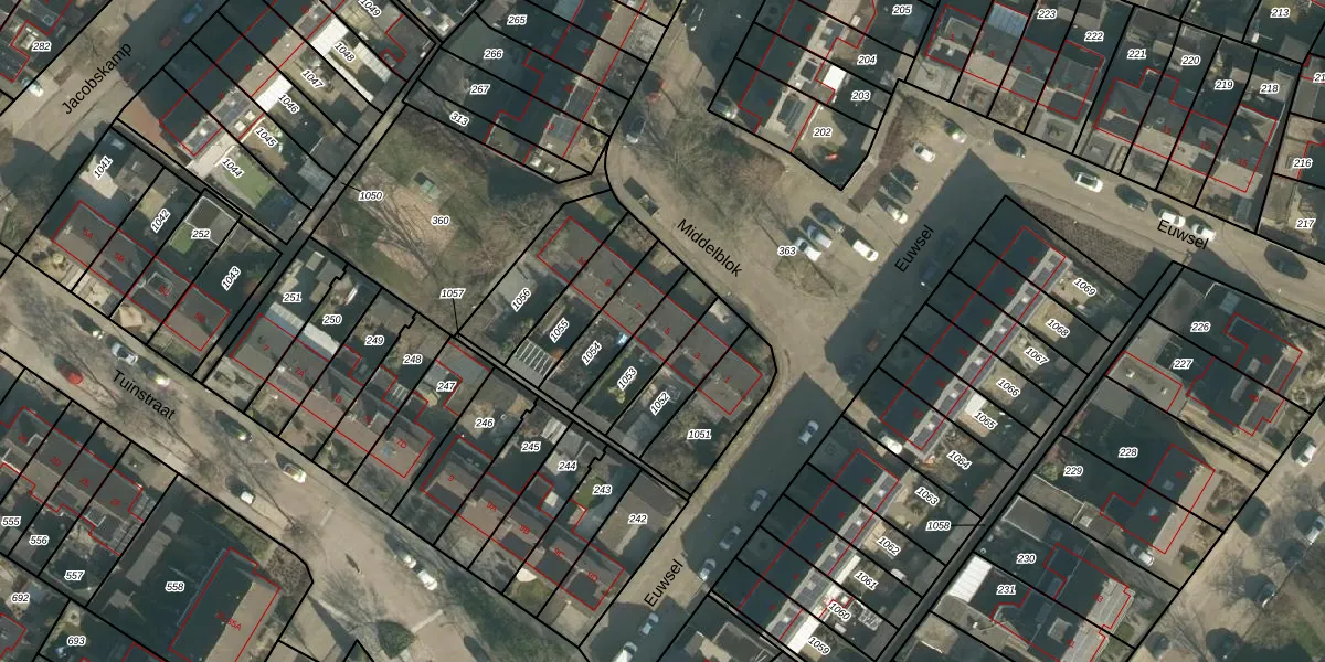 Het perceel waarop Middelblok 5 staat heeft een oppervlakte van 171 m². Dit is een middelgroot perceel. De perceeloppervlakte wordt geregistreerd door het Kadaster. Gedetailleerde informatie over de maten van dit perceel kunt u vinden in het rapport Kadastrale kaart met maatvoering van Middelblok 5.