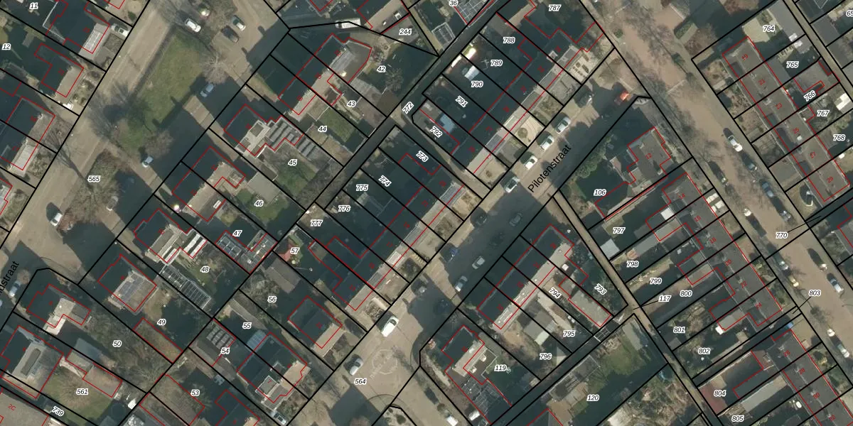 Het perceel waarop Pilotenstraat 21 staat heeft een oppervlakte van 172 m². Dit is een middelgroot perceel. De perceeloppervlakte wordt geregistreerd door het Kadaster. Gedetailleerde informatie over de maten van dit perceel kunt u vinden in het rapport Kadastrale kaart met maatvoering van Pilotenstraat 21.