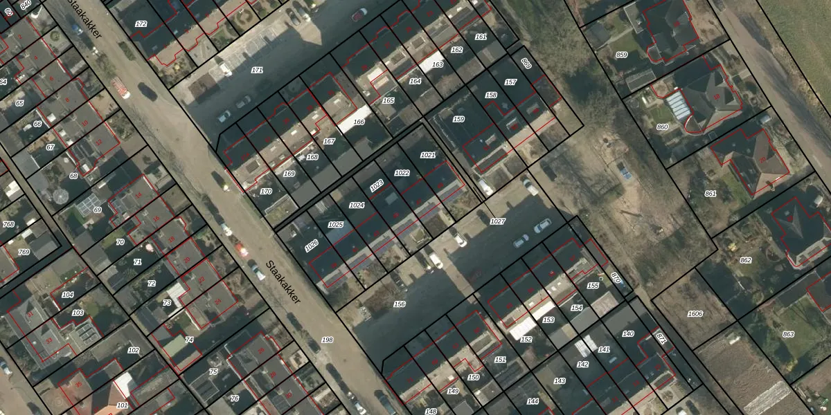 Het perceel waarop Staakakker 47 staat heeft een oppervlakte van 164 m². Dit is een middelgroot perceel. De perceeloppervlakte wordt geregistreerd door het Kadaster. Gedetailleerde informatie over de maten van dit perceel kunt u vinden in het rapport Kadastrale kaart met maatvoering van Staakakker 47.