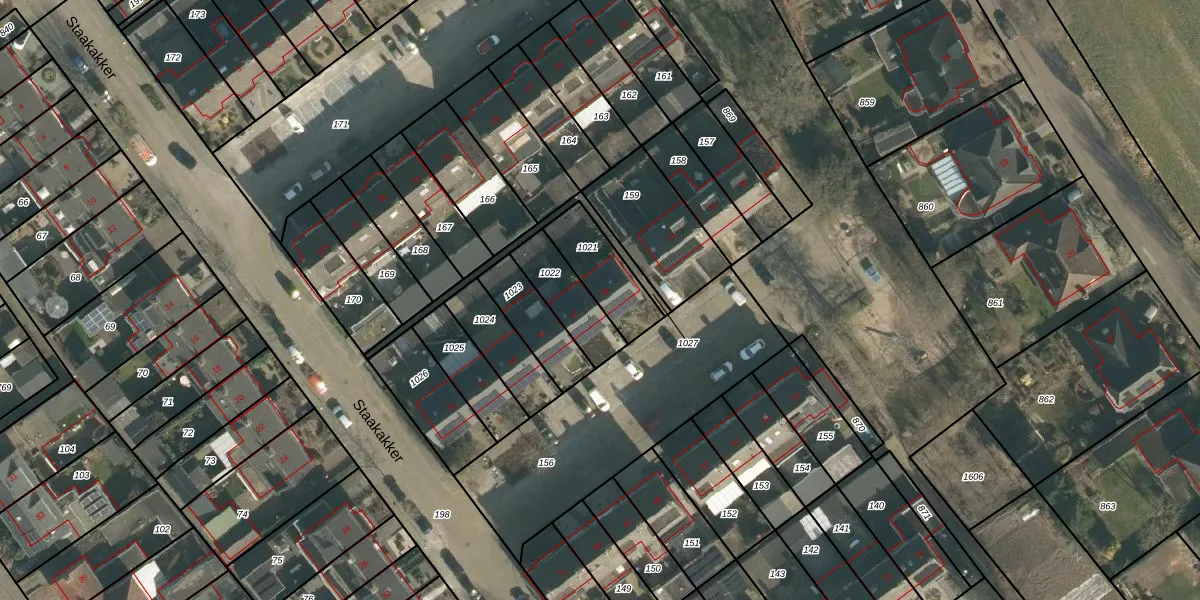 Het perceel waarop Staakakker 49 staat heeft een oppervlakte van 182 m². Dit is een middelgroot perceel. De perceeloppervlakte wordt geregistreerd door het Kadaster. Gedetailleerde informatie over de maten van dit perceel kunt u vinden in het rapport Kadastrale kaart met maatvoering van Staakakker 49.