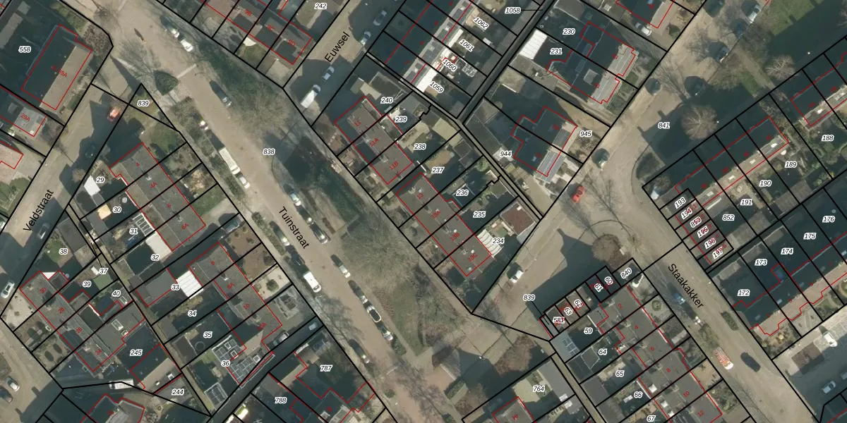 Het perceel waarop Tuinstraat 13-A staat heeft een oppervlakte van 170 m². Dit is een middelgroot perceel. De perceeloppervlakte wordt geregistreerd door het Kadaster. Gedetailleerde informatie over de maten van dit perceel kunt u vinden in het rapport Kadastrale kaart met maatvoering van Tuinstraat 13-A.