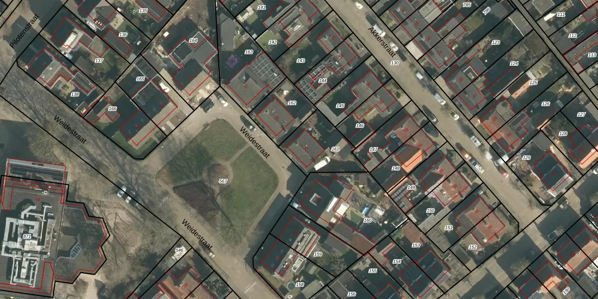 Het perceel waarop Weidestraat 21 staat heeft een oppervlakte van 351 m². Dit is een groot perceel. De perceeloppervlakte wordt geregistreerd door het Kadaster. Gedetailleerde informatie over de maten van dit perceel kunt u vinden in het rapport Kadastrale kaart met maatvoering van Weidestraat 21.