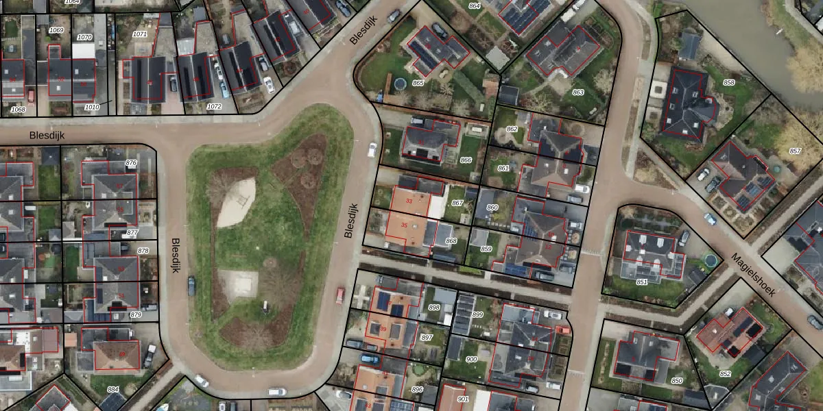 Gebruik de zoekbalk of klik op een perceel voor informatie over de adressen binnen dit perceel.