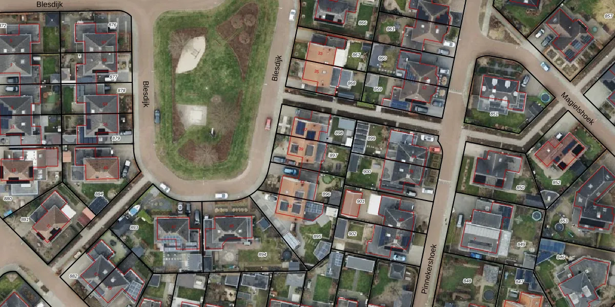 Het perceel waarop Blesdijk 39 staat heeft een oppervlakte van 245 m². Dit is een middelgroot perceel. De perceeloppervlakte wordt geregistreerd door het Kadaster. Gedetailleerde informatie over de maten van dit perceel kunt u vinden in het rapport Kadastrale kaart met maatvoering van Blesdijk 39.