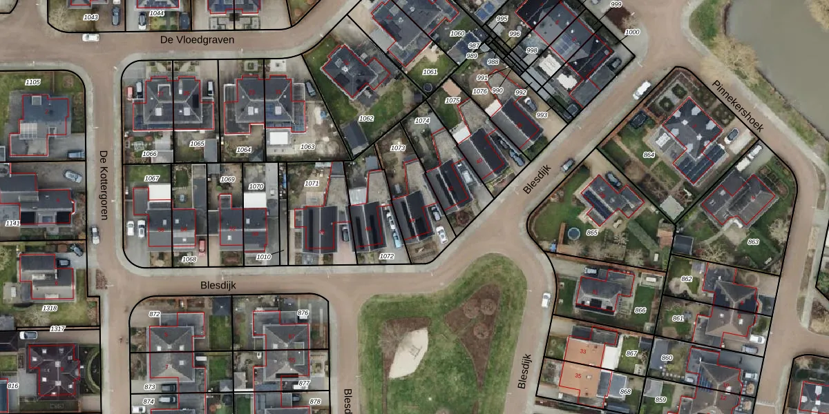 Het perceel waarop Blesdijk 44 staat heeft een oppervlakte van 325 m². Dit is een groot perceel. De perceeloppervlakte wordt geregistreerd door het Kadaster. Gedetailleerde informatie over de maten van dit perceel kunt u vinden in het rapport Kadastrale kaart met maatvoering van Blesdijk 44.
