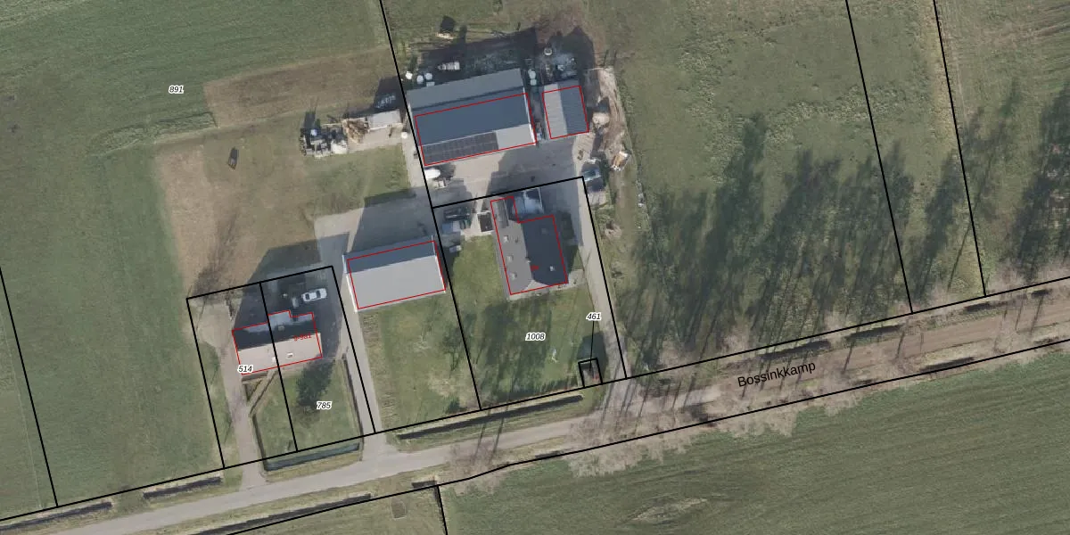 Bossinkkamp 9-b is gelegen op kadastraal perceel HAM00O1008. Deze kadastrale aanduiding is uniek en wordt gebruikt door het Kadaster om eigendomsrechten en andere zakelijke rechten vast te leggen. Het perceel maakt onderdeel uit van de kadastrale gemeente Den Ham.