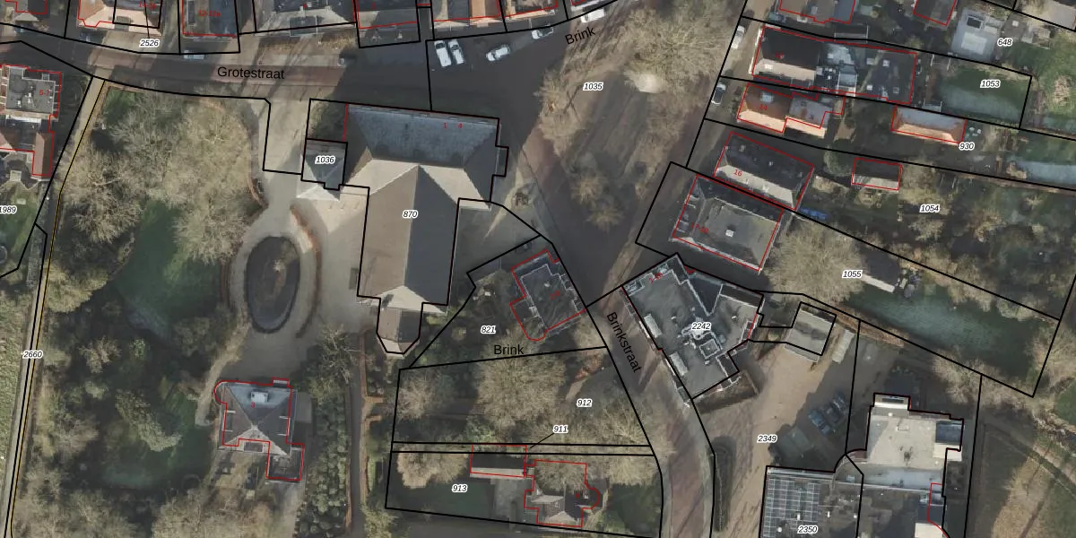 Het perceel waarop Brink 3 staat heeft een oppervlakte van 470 m². Dit is een groot perceel. De perceeloppervlakte wordt geregistreerd door het Kadaster. Gedetailleerde informatie over de maten van dit perceel kunt u vinden in het rapport Kadastrale kaart met maatvoering van Brink 3.