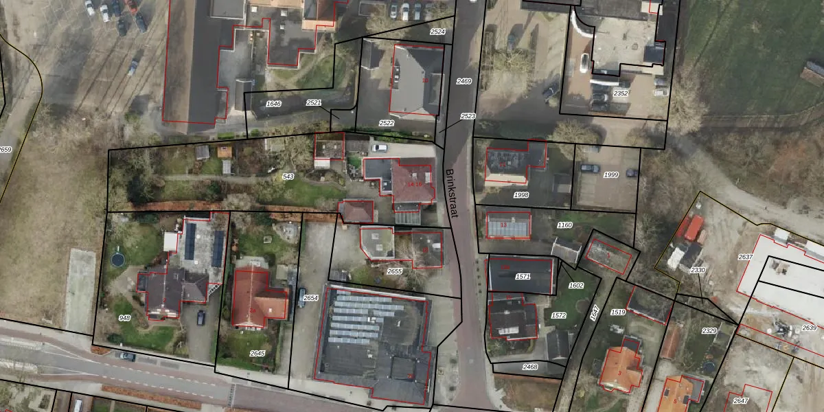 Brinkstraat 16 is gelegen op kadastraal perceel HAM00D543. Deze kadastrale aanduiding is uniek en wordt gebruikt door het Kadaster om eigendomsrechten en andere zakelijke rechten vast te leggen. Het perceel maakt onderdeel uit van de kadastrale gemeente Den Ham.