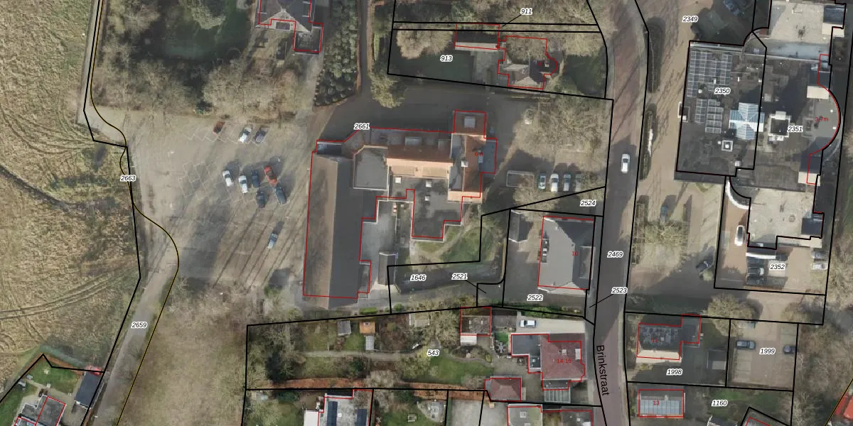 Het perceel waarop Brinkstraat 8 staat heeft een oppervlakte van 1,1 ha. Dit is een zeer groot perceel. De perceeloppervlakte wordt geregistreerd door het Kadaster. Gedetailleerde informatie over de maten van dit perceel kunt u vinden in het rapport Kadastrale kaart met maatvoering van Brinkstraat 8.