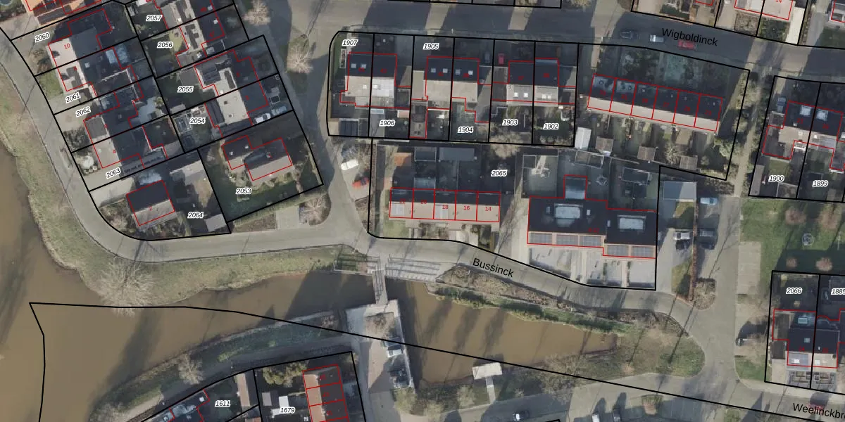 Het perceel waarop Bussinck 20 staat heeft een oppervlakte van 2875 m². Dit is een zeer groot perceel. De perceeloppervlakte wordt geregistreerd door het Kadaster. Gedetailleerde informatie over de maten van dit perceel kunt u vinden in het rapport Kadastrale kaart met maatvoering van Bussinck 20.