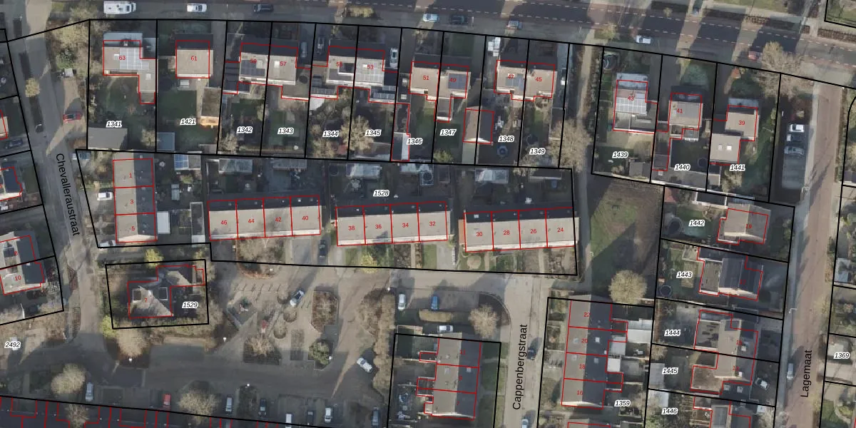 Het perceel waarop Cappenbergstraat 32 staat heeft een oppervlakte van 2759 m². Dit is een zeer groot perceel. De perceeloppervlakte wordt geregistreerd door het Kadaster. Gedetailleerde informatie over de maten van dit perceel kunt u vinden in het rapport Kadastrale kaart met maatvoering van Cappenbergstraat 32.