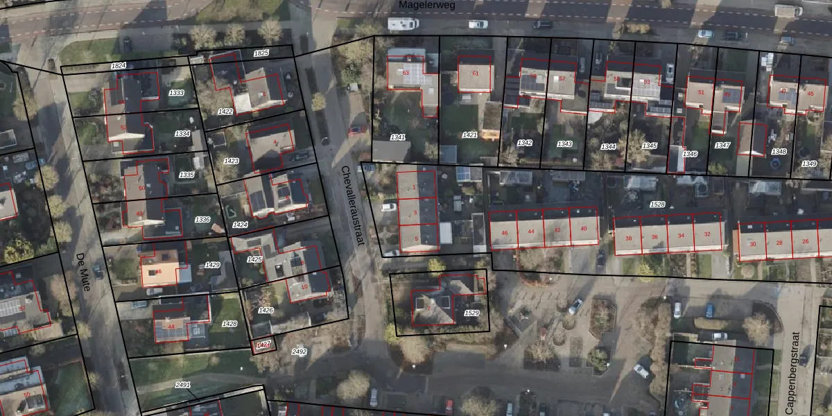 Het perceel waarop Chevalleraustraat 3 staat heeft een oppervlakte van 2759 m². Dit is een zeer groot perceel. De perceeloppervlakte wordt geregistreerd door het Kadaster. Gedetailleerde informatie over de maten van dit perceel kunt u vinden in het rapport Kadastrale kaart met maatvoering van Chevalleraustraat 3.