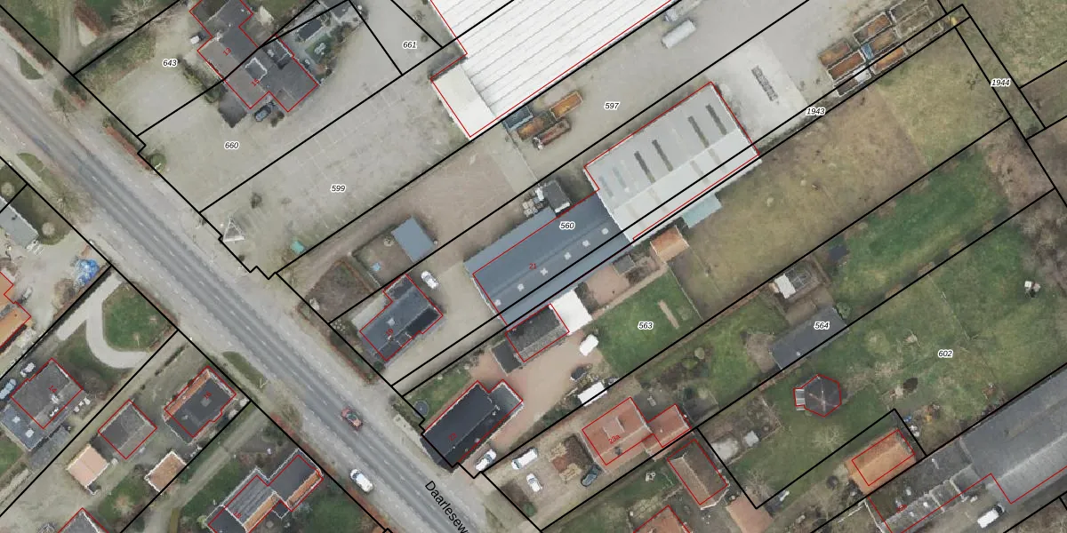 Daarleseweg 21 is gelegen op kadastraal perceel HAM00N560. Deze kadastrale aanduiding is uniek en wordt gebruikt door het Kadaster om eigendomsrechten en andere zakelijke rechten vast te leggen. Het perceel maakt onderdeel uit van de kadastrale gemeente Den Ham.
