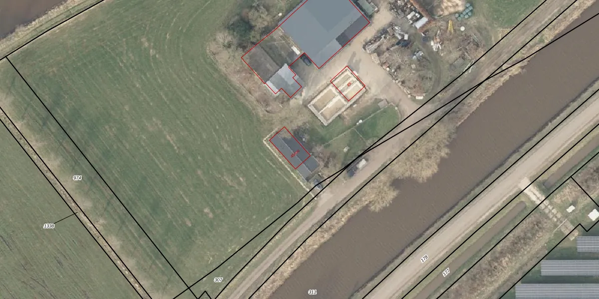 Het adres is gelegen op perceel 1337 in de sectie N en de kadastrale gemeente Den Ham. De kadastrale aanduiding is aldus HAM00-N-1337. Het perceel is met 1,6 ha relatief groot. Het gemiddelde ligt in de kadastrale gemeente Den Ham op 4694,65 m². Het grootste perceel in de kadastrale gemeente is 57,2 ha. Het kleinste perceel heeft een oppervlakte van 0 m². Op het perceel liggen in totaal 3 adressen. De laatste wijziging in het de Basisregistratie Kadaster (BRK) was op 25-08-2006.
