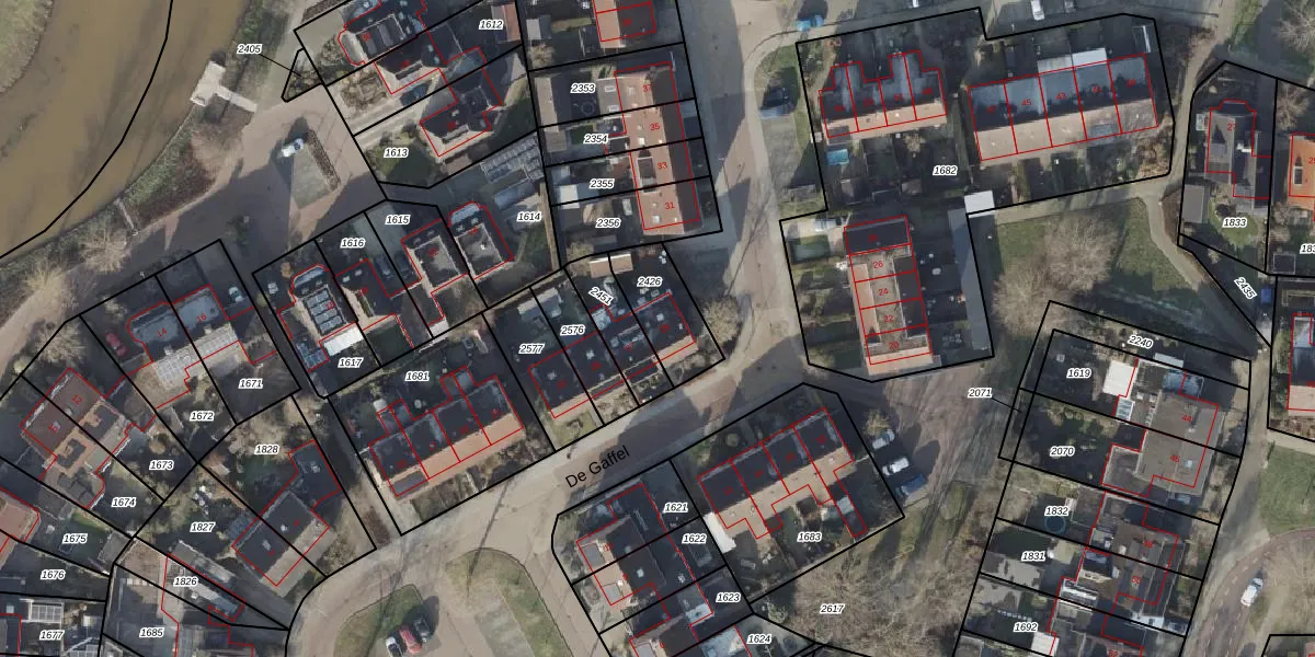 Het perceel waarop De Gaffel 29 staat heeft een oppervlakte van 190 m². Dit is een middelgroot perceel. De perceeloppervlakte wordt geregistreerd door het Kadaster. Gedetailleerde informatie over de maten van dit perceel kunt u vinden in het rapport Kadastrale kaart met maatvoering van De Gaffel 29.