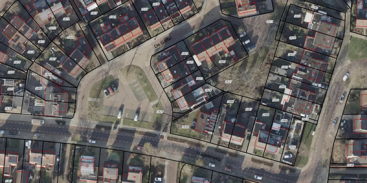 Gebruik de zoekbalk of klik op een perceel voor informatie over de adressen binnen dit perceel.