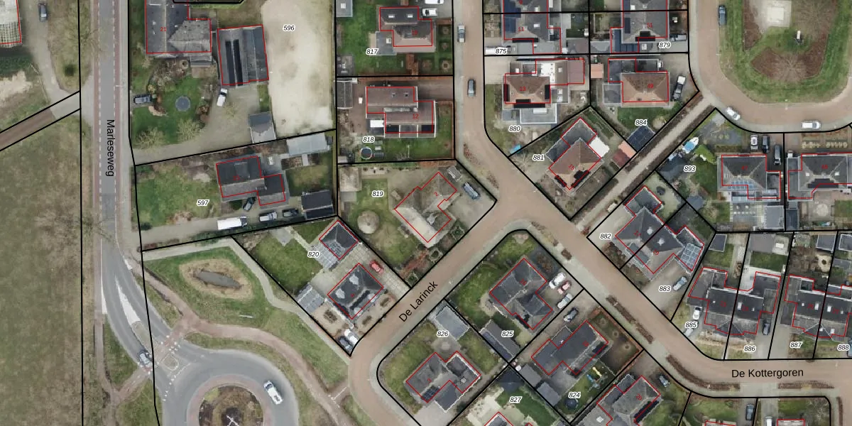 Gebruik de zoekbalk of klik op een perceel voor informatie over de adressen binnen dit perceel.
