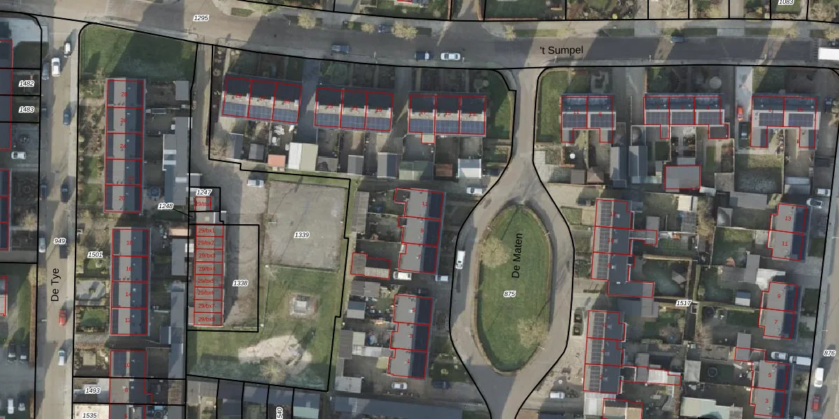 De Maten 11 is gelegen op kadastraal perceel HAM00F1541. Deze kadastrale aanduiding is uniek en wordt gebruikt door het Kadaster om eigendomsrechten en andere zakelijke rechten vast te leggen. Het perceel maakt onderdeel uit van de kadastrale gemeente Den Ham.
