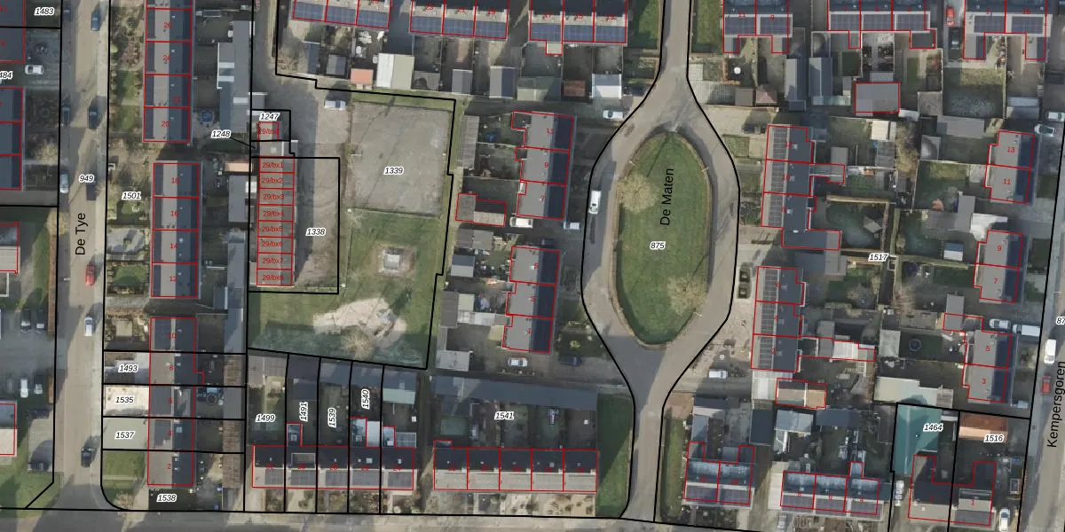 De Maten 5 is gelegen op kadastraal perceel HAM00F1541. Deze kadastrale aanduiding is uniek en wordt gebruikt door het Kadaster om eigendomsrechten en andere zakelijke rechten vast te leggen. Het perceel maakt onderdeel uit van de kadastrale gemeente Den Ham.