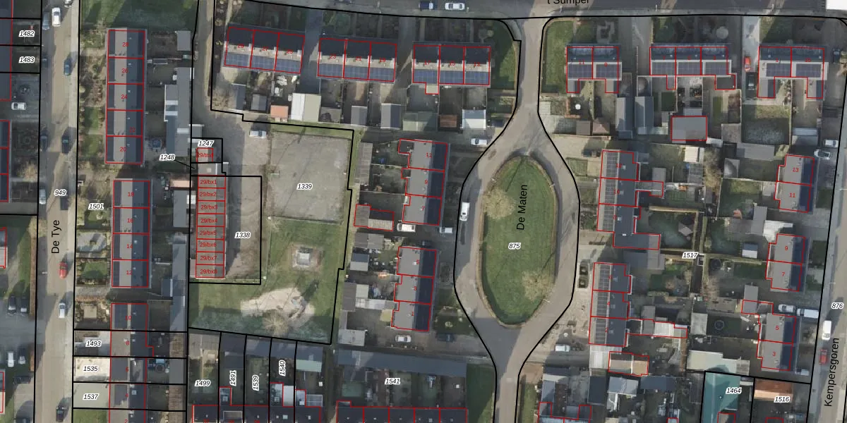 De Maten 7 is gelegen op kadastraal perceel HAM00F1541. Deze kadastrale aanduiding is uniek en wordt gebruikt door het Kadaster om eigendomsrechten en andere zakelijke rechten vast te leggen. Het perceel maakt onderdeel uit van de kadastrale gemeente Den Ham.