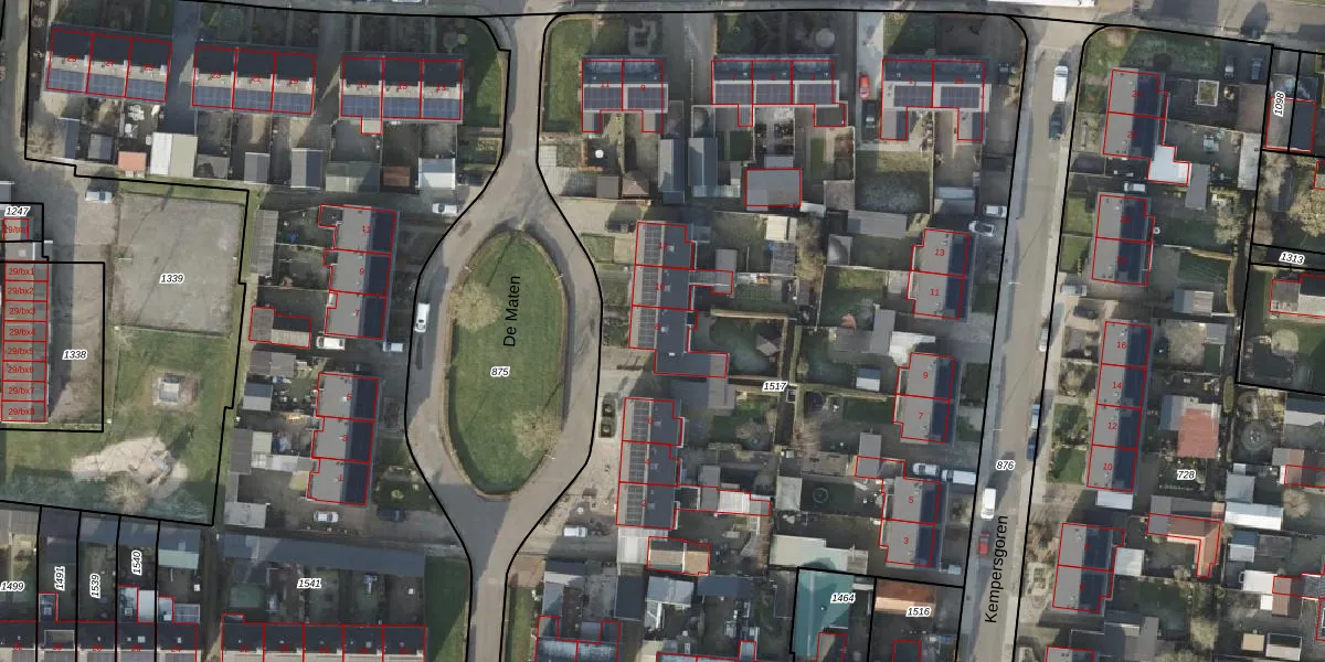 De Maten 8 is gelegen op kadastraal perceel HAM00F1517. Deze kadastrale aanduiding is uniek en wordt gebruikt door het Kadaster om eigendomsrechten en andere zakelijke rechten vast te leggen. Het perceel maakt onderdeel uit van de kadastrale gemeente Den Ham.
