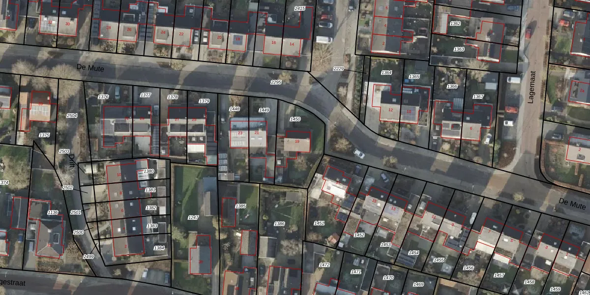Het perceel waarop De Mute 19 staat heeft een oppervlakte van 401 m². Dit is een groot perceel. De perceeloppervlakte wordt geregistreerd door het Kadaster. Gedetailleerde informatie over de maten van dit perceel kunt u vinden in het rapport Kadastrale kaart met maatvoering van De Mute 19.