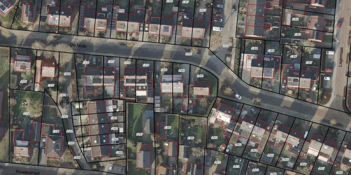 Het perceel waarop De Mute 21 staat heeft een oppervlakte van 275 m². Dit is een middelgroot perceel. De perceeloppervlakte wordt geregistreerd door het Kadaster. Gedetailleerde informatie over de maten van dit perceel kunt u vinden in het rapport Kadastrale kaart met maatvoering van De Mute 21.