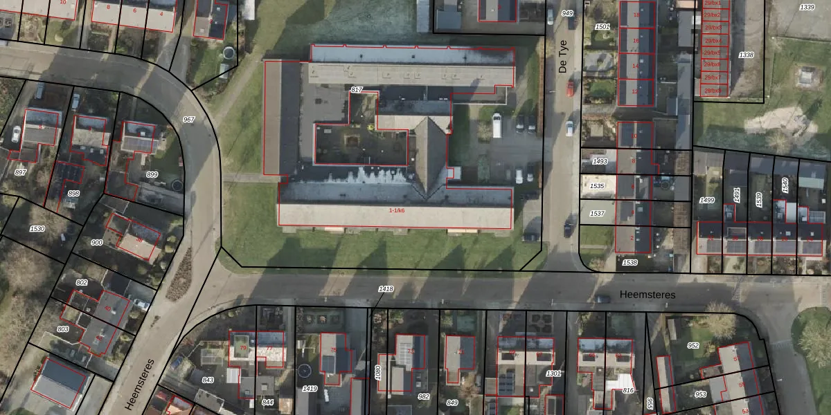 Het perceel waarop De Tye 1-k2 staat heeft een oppervlakte van 5768 m². Dit is een zeer groot perceel. De perceeloppervlakte wordt geregistreerd door het Kadaster. Gedetailleerde informatie over de maten van dit perceel kunt u vinden in het rapport Kadastrale kaart met maatvoering van De Tye 1-k2.