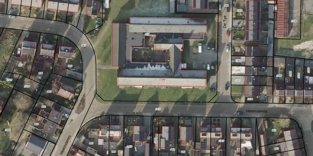 Het perceel waarop De Tye 1-k3 staat heeft een oppervlakte van 5768 m². Dit is een zeer groot perceel. De perceeloppervlakte wordt geregistreerd door het Kadaster. Gedetailleerde informatie over de maten van dit perceel kunt u vinden in het rapport Kadastrale kaart met maatvoering van De Tye 1-k3.