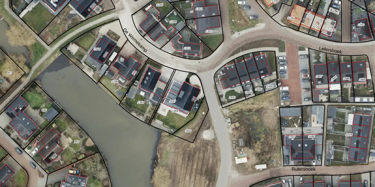 Het perceel waarop De Wemekamp 14 staat heeft een oppervlakte van 598 m². Dit is een groot perceel. De perceeloppervlakte wordt geregistreerd door het Kadaster. Gedetailleerde informatie over de maten van dit perceel kunt u vinden in het rapport Kadastrale kaart met maatvoering van De Wemekamp 14.