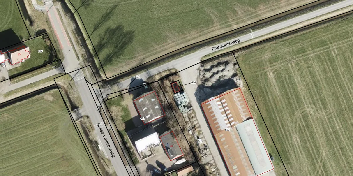 Fransumerweg 7-t is gelegen op kadastraal perceel ADA00G630. Deze kadastrale aanduiding is uniek en wordt gebruikt door het Kadaster om eigendomsrechten en andere zakelijke rechten vast te leggen. Het perceel maakt onderdeel uit van de kadastrale gemeente Aduard.