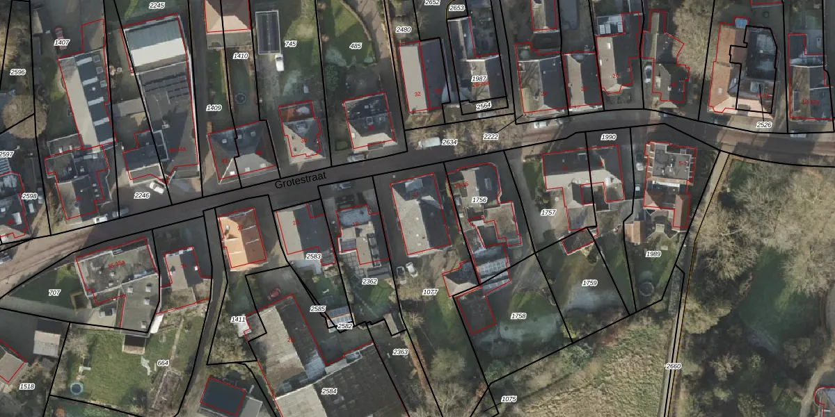 Het perceel waarop Grotestraat 17 staat heeft een oppervlakte van 970 m². Dit is een groot perceel. De perceeloppervlakte wordt geregistreerd door het Kadaster. Gedetailleerde informatie over de maten van dit perceel kunt u vinden in het rapport Kadastrale kaart met maatvoering van Grotestraat 17.