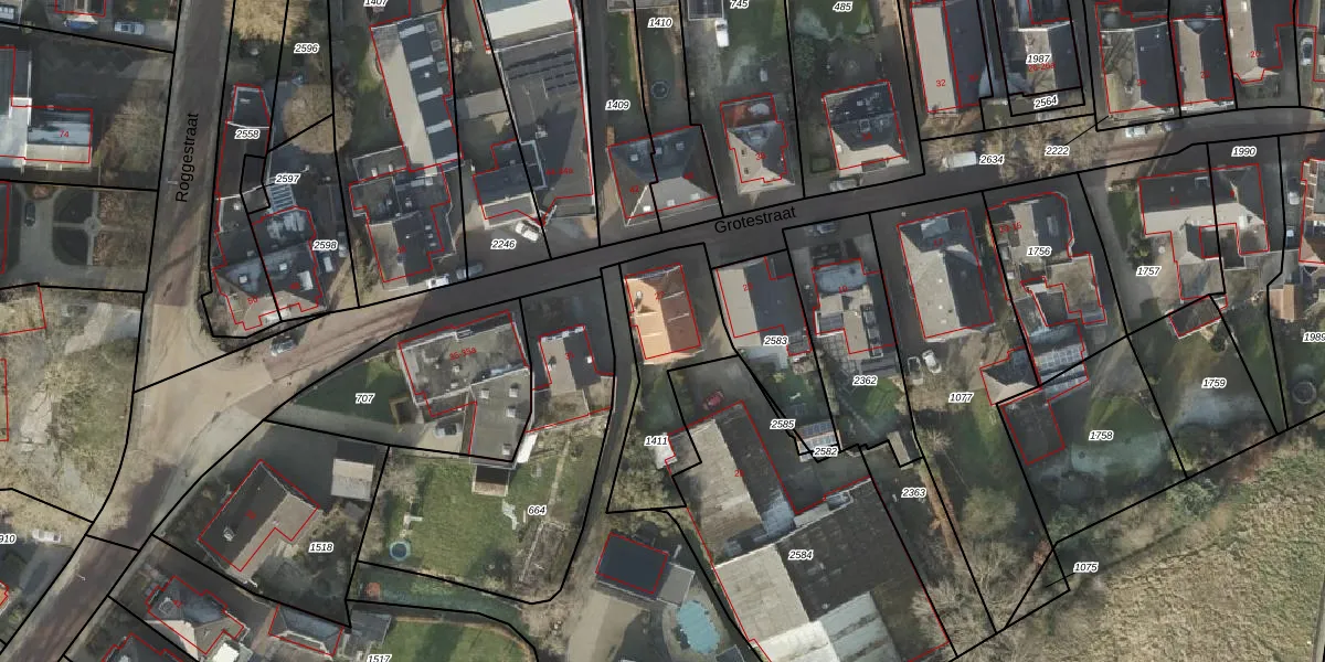Het perceel waarop Grotestraat 27 staat heeft een oppervlakte van 435 m². Dit is een groot perceel. De perceeloppervlakte wordt geregistreerd door het Kadaster. Gedetailleerde informatie over de maten van dit perceel kunt u vinden in het rapport Kadastrale kaart met maatvoering van Grotestraat 27.